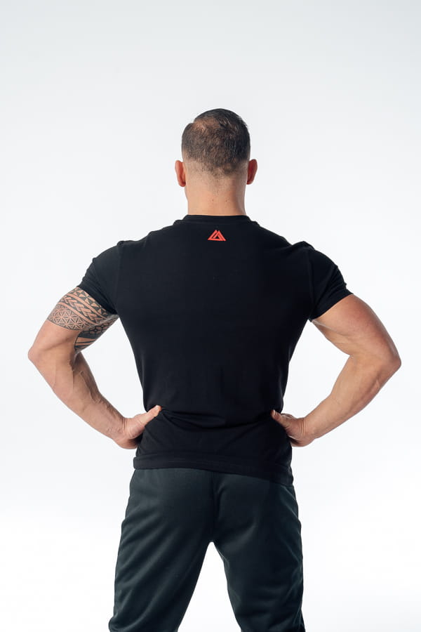 T-shirt męski typu SLIM FIT w kolorze czarnym, wykonany z najwyższej jakości polskiej bawełny. Dzięki niewielkiej domieszce elastanu koszulka lepiej dopasowuje się do sylwetki, jest bardziej elastyczna, przyjemniejsza w dotyku oraz nie mnie się jak czysta bawełna. Wszystkie nadruki zostały wykonane z zastosowaniem technologii wypukłego druku 3D.