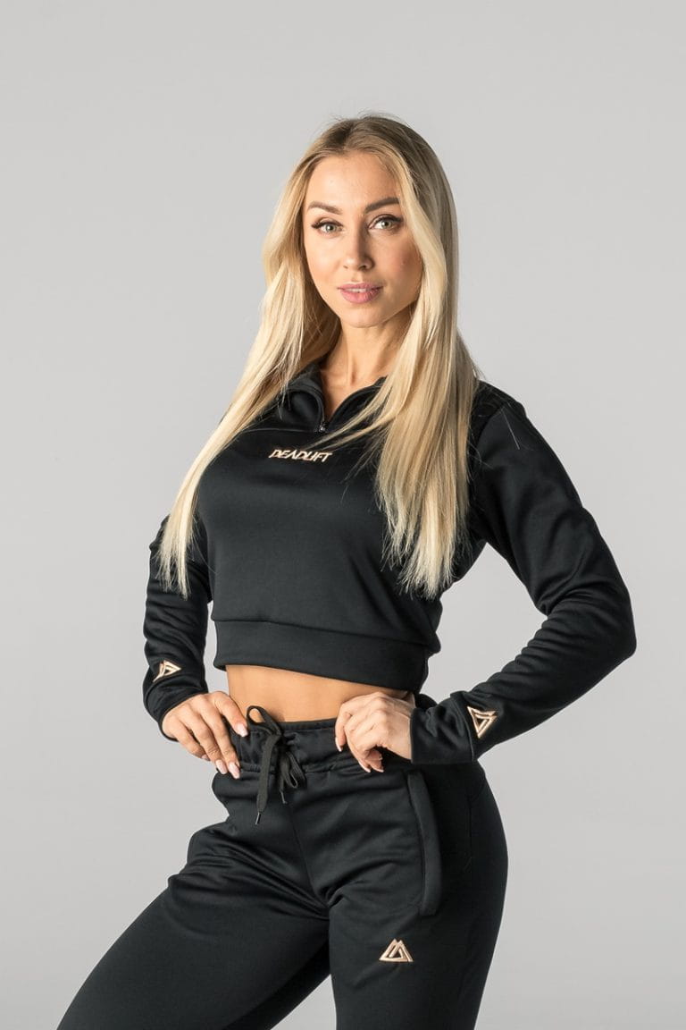 Bluza damska o krótszym kroju ze stójką. Najwyższej jakości dzianina oraz dopracowane detale to cechy charakterystyczne produktów z kolekcji Metallic. Klasyczna czerń, niezwykle miękki materiał, podkreślający sylwetkę krój – to wszystko w jednym produkcie. Bluza crop Metallic to połączenie wygody z nowoczesnym designem.