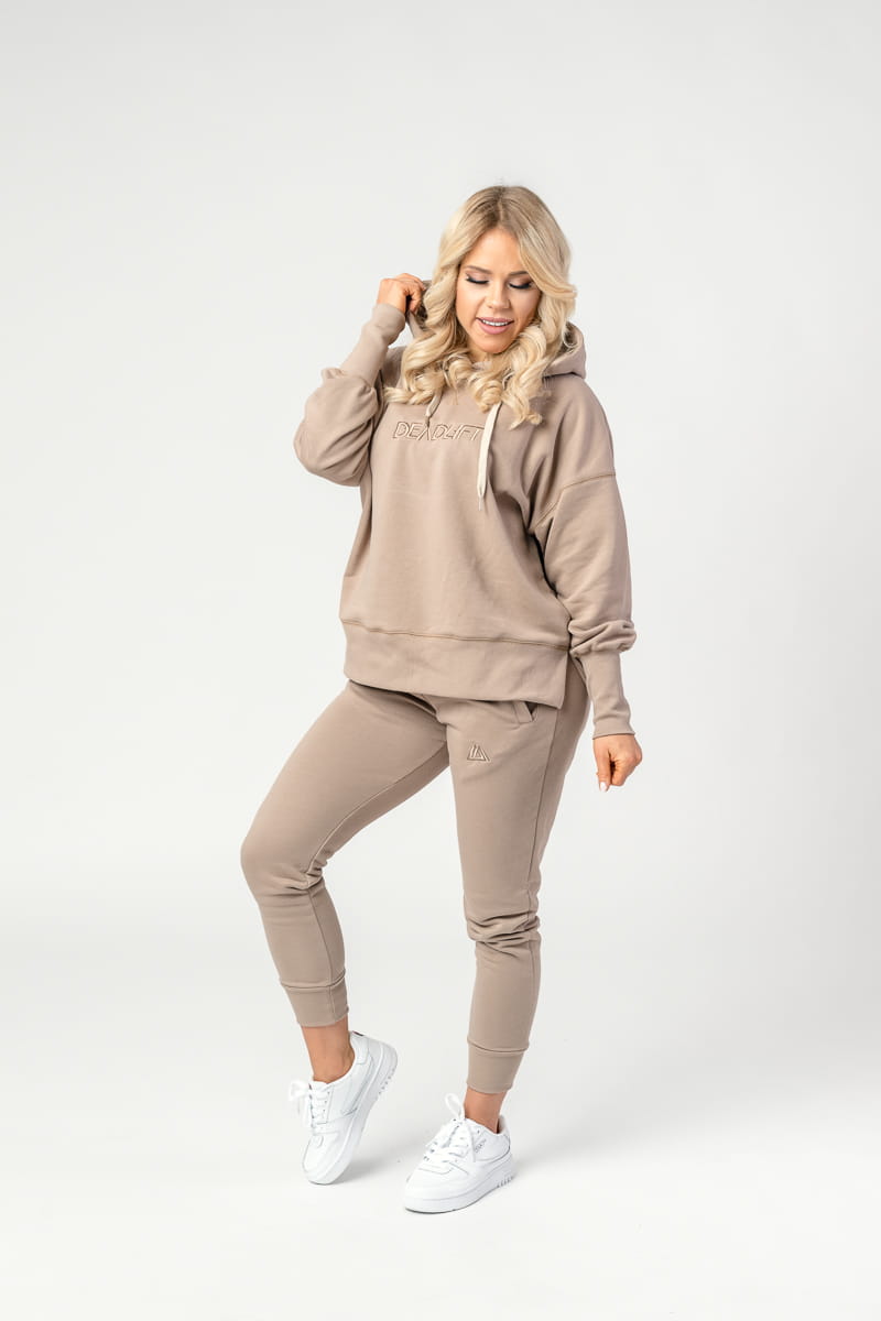 Oversizowa bluza damska DEADLIFT w kolorze beżowym. Prosty, luźny krój oraz niezwykle miękka bawełna z której uszyta jest bluza sprawią, że będziesz czuć się komfortowo w każdej sytuacji. Przedłużone ściągacze na rękawach oraz specjalne wycięcia po bokach nadają bluzie charakteru. Zestaw ją z dopasowanymi dresami NUDE i ciesz się oryginalnym, sportowym lookiem.
