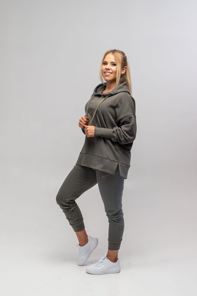 Spodnie dresowe damskie DEADLIFT w kolorze khaki. Wysoki stan i krój uwydatniają walory kobiecej sylwetki. Świetnie wyglądają w komplecie z oversizową bluzą FURY. Idealne nie tylko na trening, ale również jako element codziennej stylizacji.
