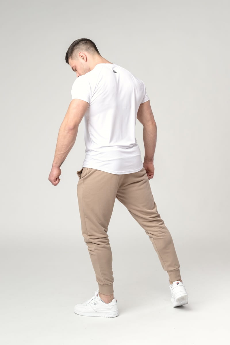 Spodnie dresowe męskie w kolorze beżowym. Wykonane z najwyższej jakości, polskiej bawełny PREMIUM. Elastyczne ściągacze oraz sznurek w pasie, pozwolą dopasować spodnie do każdej sylwetki. Kieszenie pomieszczą telefon, klucze oraz inne drobiazgi. Klasyczny krój, idealnie sprawdzi się nie tylko podczas treningu, ale i w codziennej stylizacji.