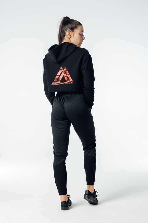 Spodnie dresowe damskie ze ściągaczem na łydce. Wysoki stan i krój pozwala uwydatniać walory damskiej sylwetki. Dzięki specjalnej konstrukcji mimo braku elastanu spodnie nie ograniczają ruchów, doskonale sprawdzą się do treningu jak i codziennego użytku. Materiał jest miękki i przyjemny w dotyku. Nie odkształca się (m.in. spodnie nie „wybijają się kolanach”) podczas użytkowania. Dół spodni wykonany jest z elastycznego ściągacza z zamkiem. Sygnowane nowym skróconym logo „DL” w postaci haftu. Spodnie posiadają dodatkową kieszonkę wewnątrz kieszeni głównej (np. na telefon), wykonaną z czerwonego elastycznego materiału