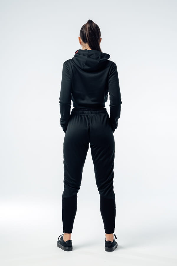 Krótka bluza z kapturem typu crop. Sygnowana logo „DL” na rękawach w postaci haftów. Z tyłu na kapturze haftowany napis DEADLIFT. Kaptur uszyty z podwójnego materiału, dzięki czemu bardzo ładnie się układa. Materiał z którego wykonana jest bluza jest miękki i przyjemny w dotyku, delikatnie błyszczyIdealnie sprawdzi się w komplecie z legginsami lub w zestawieniu ze spodniami dresowymi o wysokim stanie. Uniwersalny design sprawia, że bluza znajdzie zastosowanie zarówno jako element stroju sportowego jak i w codziennej stylizacji. W komplecie do bluzy dostępne są spodnie Basic.