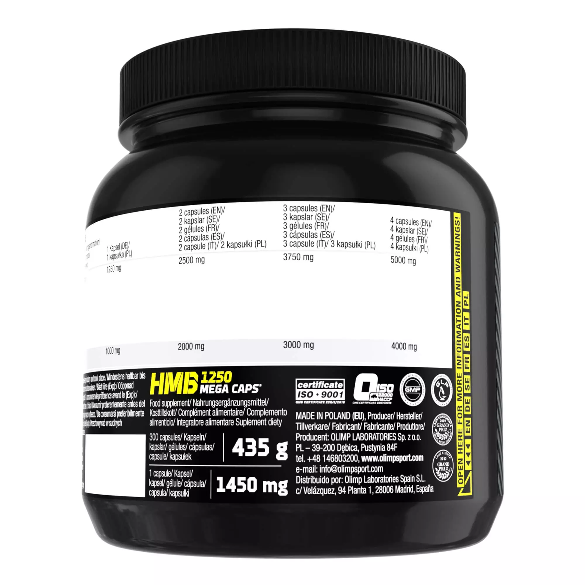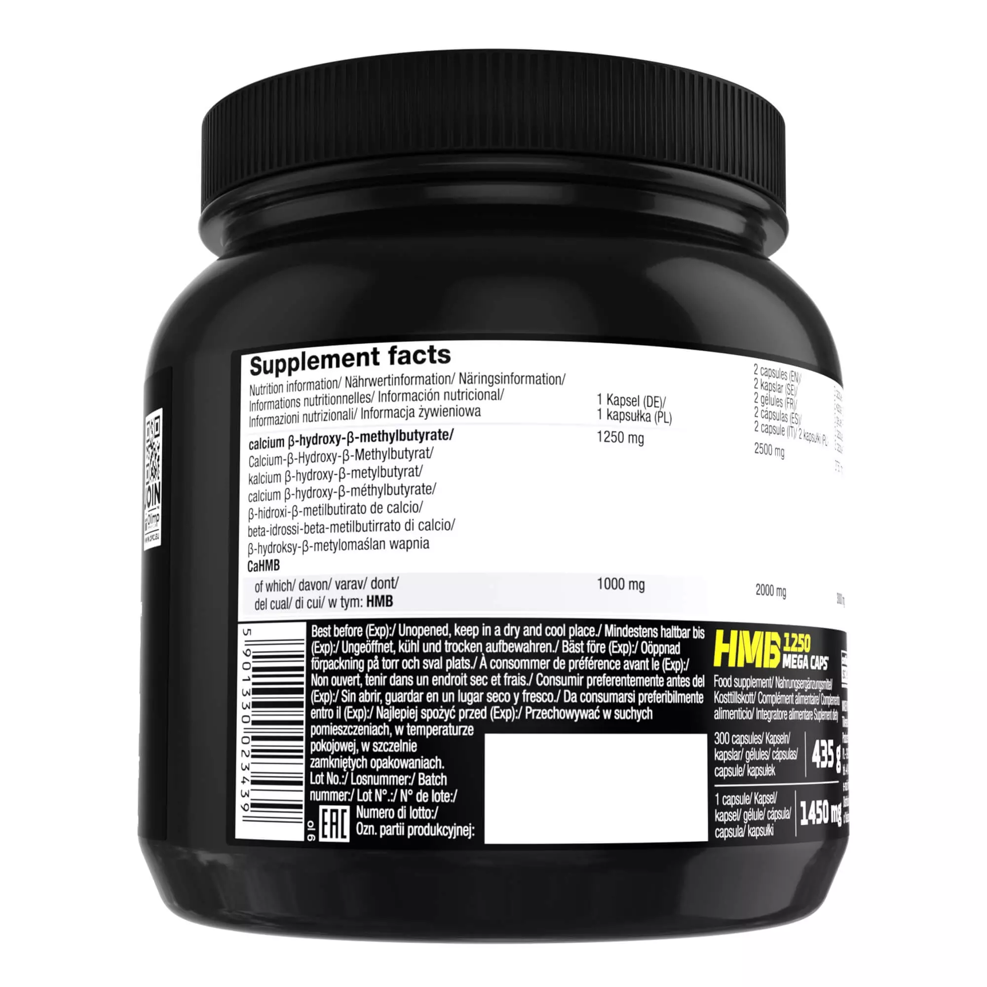 - Każda kapsułka to 1000 mg łatwo przyswajalnego HMB