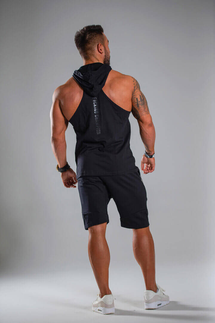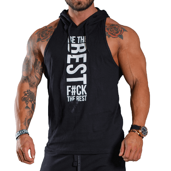 Koszulka bez rękawów z przodu posiada napis motywacyjny „Be The Best F#ck The Rest". To + 30 % do siły!